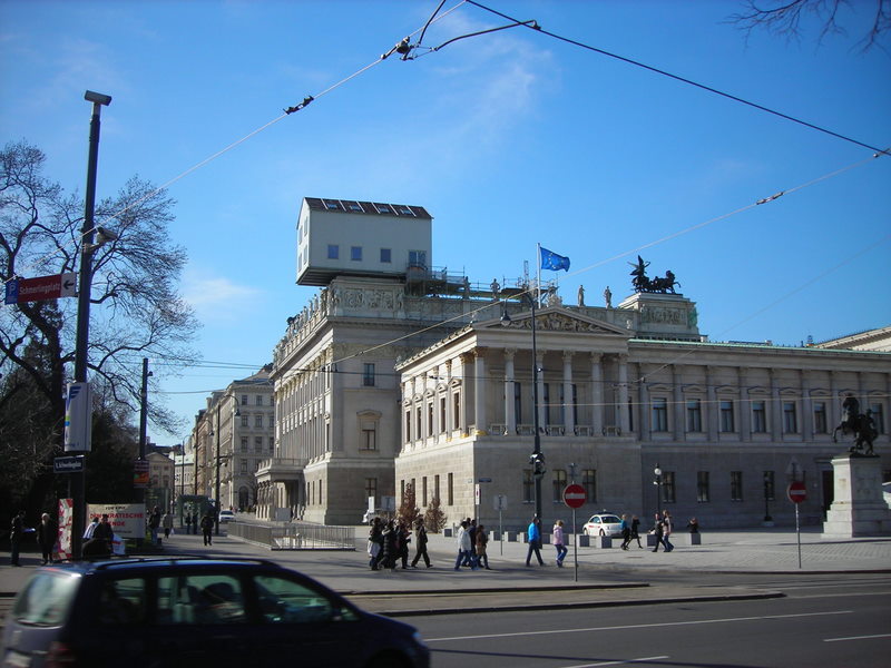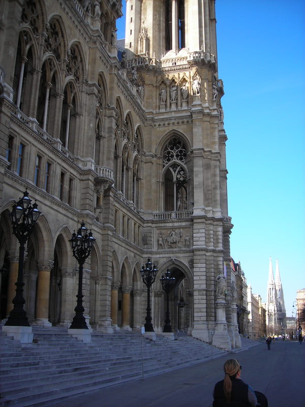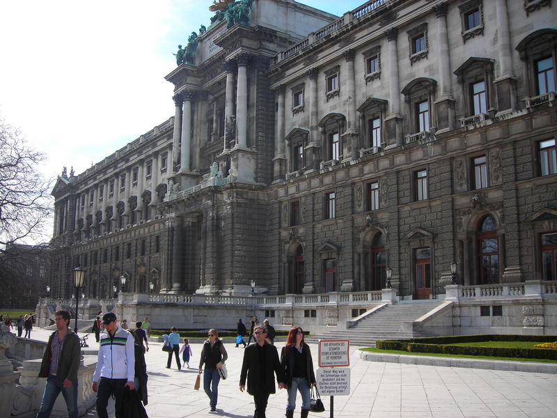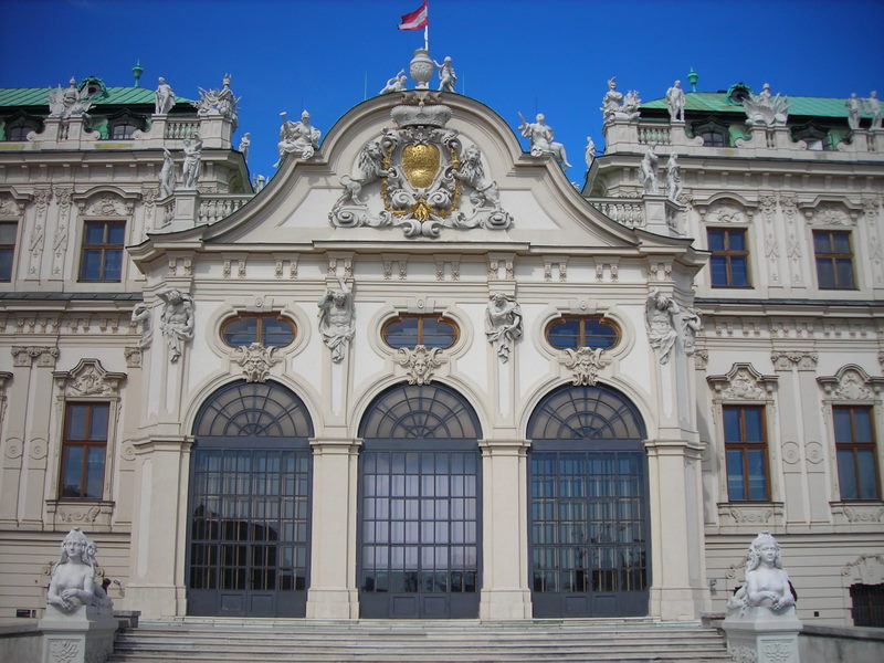 We got to Vienna (Wien) where it was sunny, and nice… nice enough to take my coat off for the day. At first glance out of the train station, it didn’t look all that impressive. It was mostly like any other ordinary city. As we made our way towards the center of town, with no set destination in mind, we walked past the the Belvedere, a huge palace right near the train station. Immediately we were floored. This thing had all you could want from a historical building, sculptures, gold, marble, huge garden, you name it, it had it.
