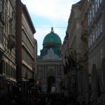 We left the grounds and headed toward the ring. The ring (Ringstraße) is a strip of roads that encircles the main part of the city. Apparently there are a lot of really cool buildings and parks along the ring. As we neared the ring, we started to get hungry, and what better place to eat than a street vendor selling bratwurst… It was probably the best bratwurst I had ever eaten, mine was mildly spicy, and Chelsea’s had cheese in it. Both of them were amazing. As we continued on to the ring, we noticed that around every corner was a new photo opportunity, every single building in the city was worth taking a picture of. We sat in a park, and made our way around the ring, and true to form, it had some amazing buildings. We then started making our way towards the center of town, where St. Stephen’s Cathedral was.